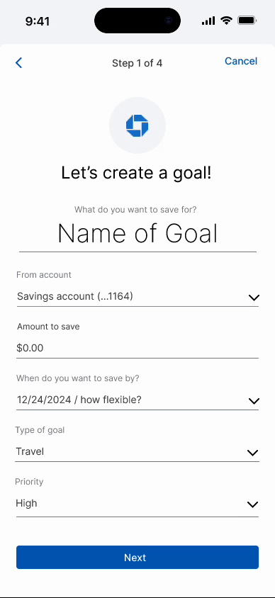 In this project, I designed an AI-powered Financial Wellness Coach for Chase’s mobile banking app. The goal was to provide users with personalized, real-time financial guidance through AI-driven insights, spending recommendations, and dynamic goal adjustments. By leveraging predictive analytics, the assistant helps users stay on track with their financial goals and make smarter financial decisions based on their unique spending patterns.
