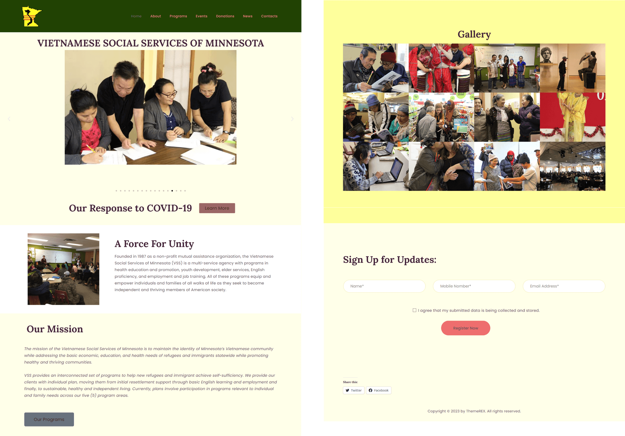 The Vietnamese Social Services of Minnesota provides services for its community, but lacks a digital presence representative of their organization.